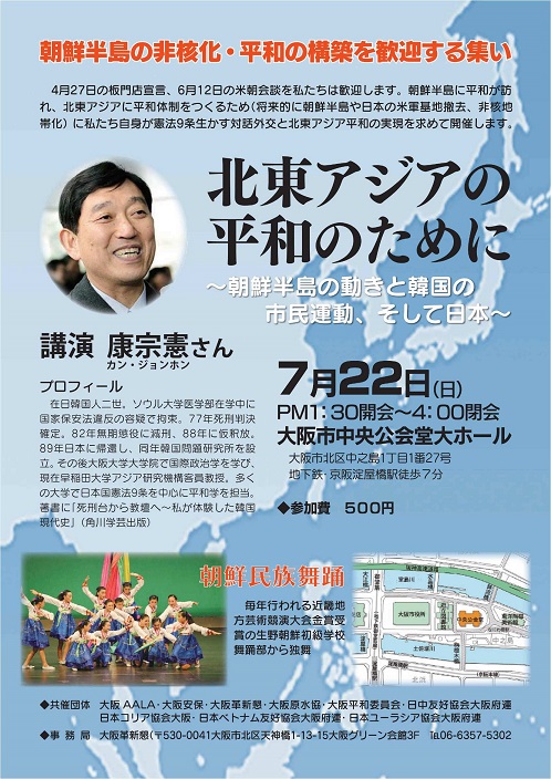 4月27日の板門店宣言、6月12日の米朝会談を私たちは歓迎します。朝鮮半島に平和が訪れ、北東アジアに平和体制をつくるために(将来的に朝鮮半島や日本の米軍基地撤去、非核地帯化)に私たち自身が憲法9条生かす対話外交と北東アジア平和の実現を求めて開催します。