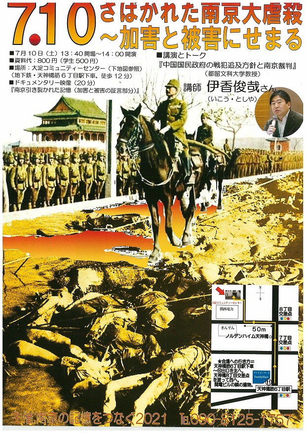 12月7日(日)に国労大阪会館3階大会議室で行われます。2025年のテーマは、南京大虐殺の真相ー殺した側と殺された側の証言です。