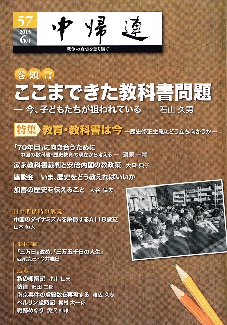 時事評論の第4回は、季刊『中帰連』(「撫順の奇跡を語り継ぐ会;代表姫田光義)2015年6月号に掲載された日中関係時事解説・山本恒人「中国のダイナミズムを象徴するAIIB」を編集部および発行人姫田光義先生の許諾を得て転載します。習近平国家主席の英国訪問(10月)と中英経済連携、欧州復興開発銀行による中国加盟承認(12月)と、相次ぐ中国-欧州間連携強化の流れの理解に役立つでしょう。(右の写真カットは、季刊「中帰連」掲載号の表紙です。)