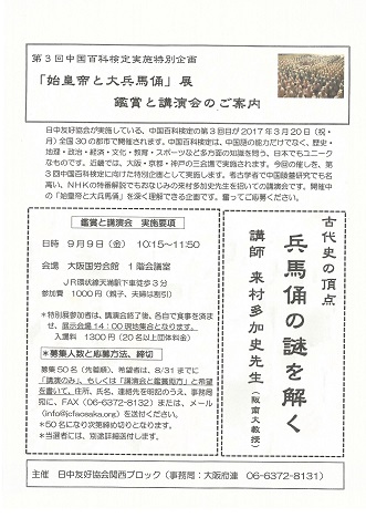 近畿2府4県の日中友好協会の組織と、近畿圏で催される、行事、学習会、講演会等を紹介するページを開設しました。大阪・中の島で開催中の特別展「始皇帝と大兵馬俑」のサイトの紹介、京都府連の「夏の映画祭」を紹介しています。