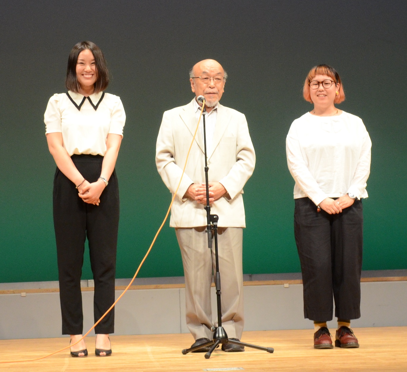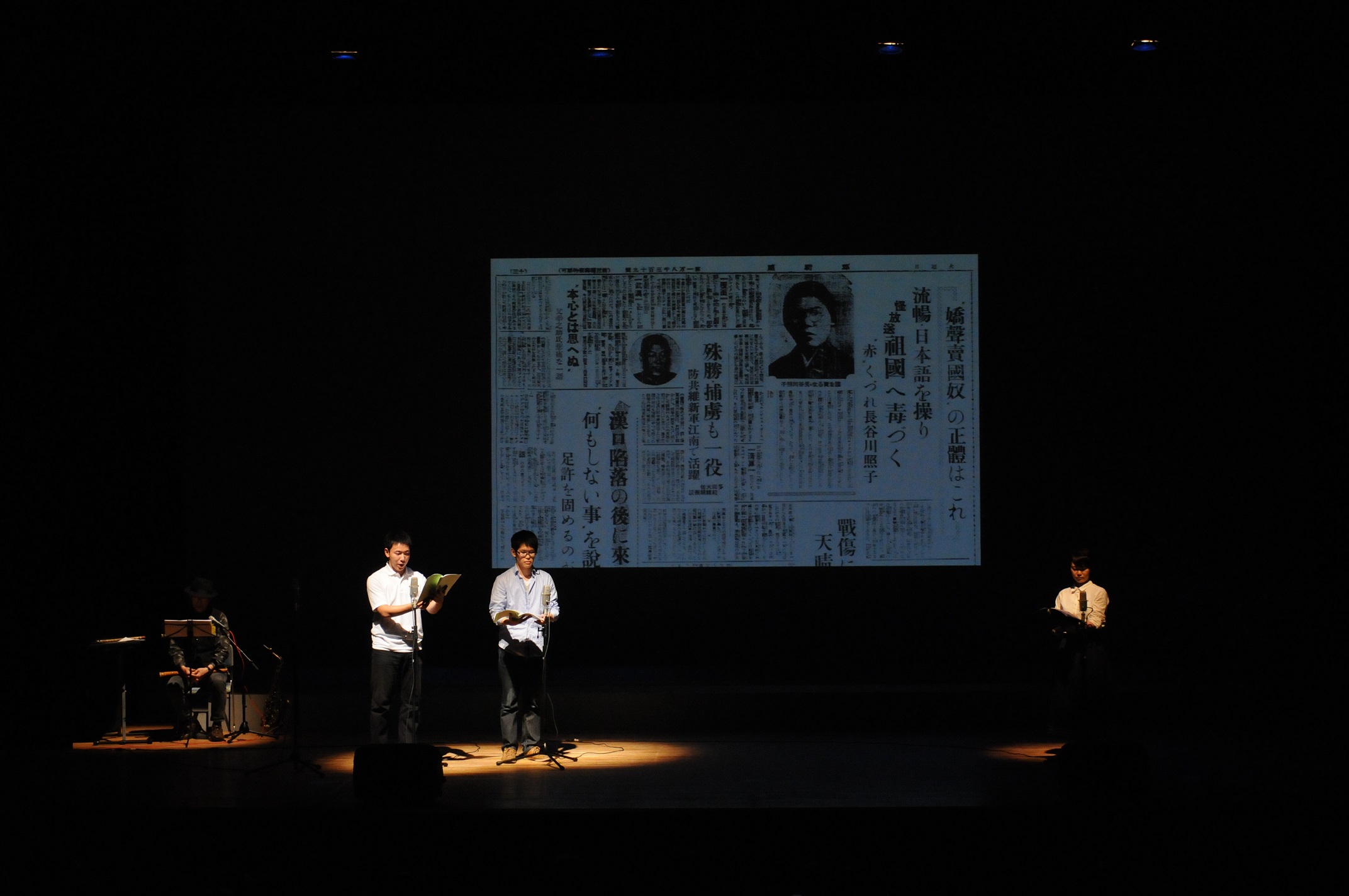 司会進行は、日本と中国の20代の女性が担当してくれました。 大学生3人、劇団息吹女優1人が演じる朗読劇が始まると会場は静まり返り、惹き込まれました。